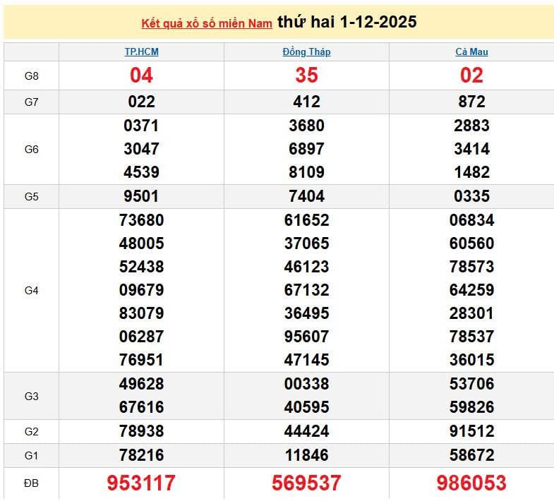 XSMN 1/12, KQXSMN 1/12. Xem lại kết quả xổ số miền Nam ngày 1/12/2025