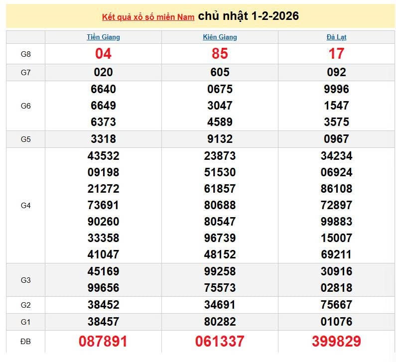 XSMN 1/2, KQXSMN 1/2. Xem lại kết quả xổ số miền Nam ngày 1/2/2026