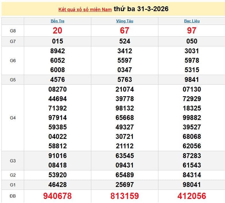 XSMN 31/3, KQXSMN 31/3. Xem lại kết quả xổ số miền Nam ngày 31/3/2026