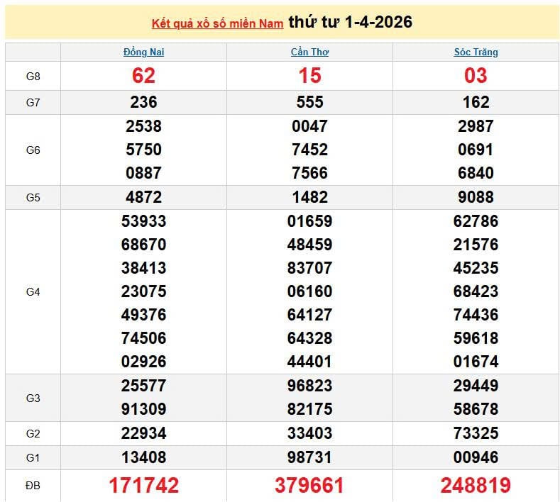 XSMN 1/4, KQXSMN 1/4. Xem lại kết quả xổ số miền Nam ngày 1/4/2026