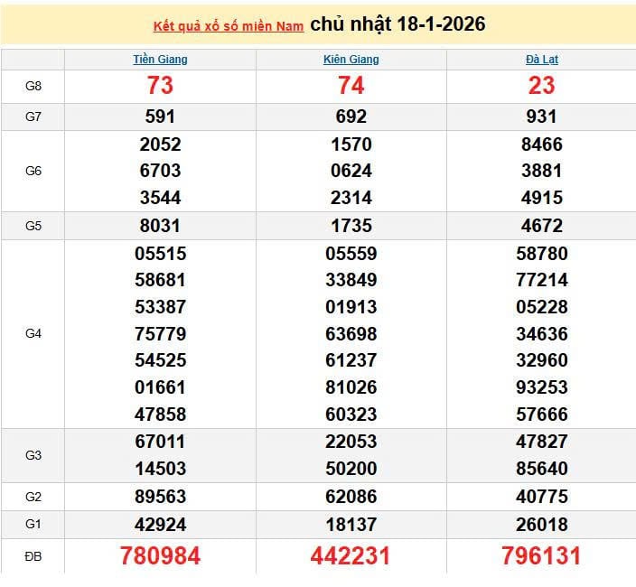 XSMN 18/1, KQXSMN 18/1. Xem lại kết quả xổ số miền Nam ngày 18/1/2026