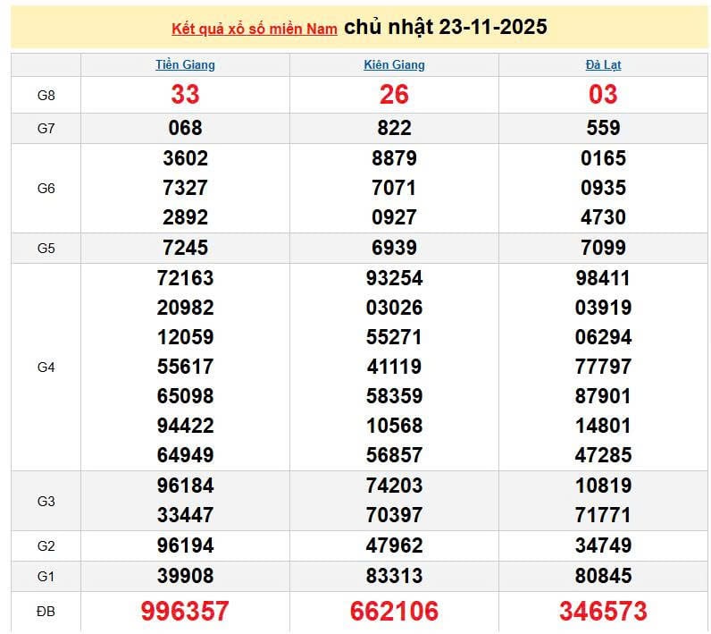 XSMN 23/11, KQXSMN 23/11. Xem lại kết quả xổ số miền Nam ngày 23/11/2025