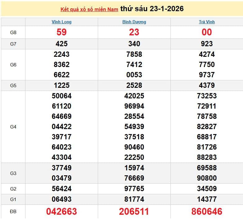 XSMN 23/1, KQXSMN 23/1. Xem lại kết quả xổ số miền Nam ngày 23/1/2026