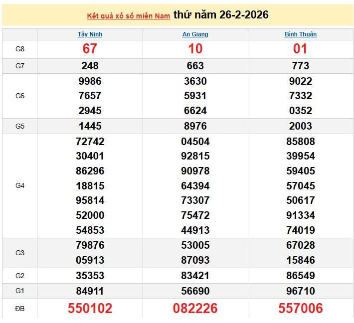 XSMN 26/2, KQXSMN 26/2. Xem lại kết quả xổ số miền Nam ngày 26/2/2026