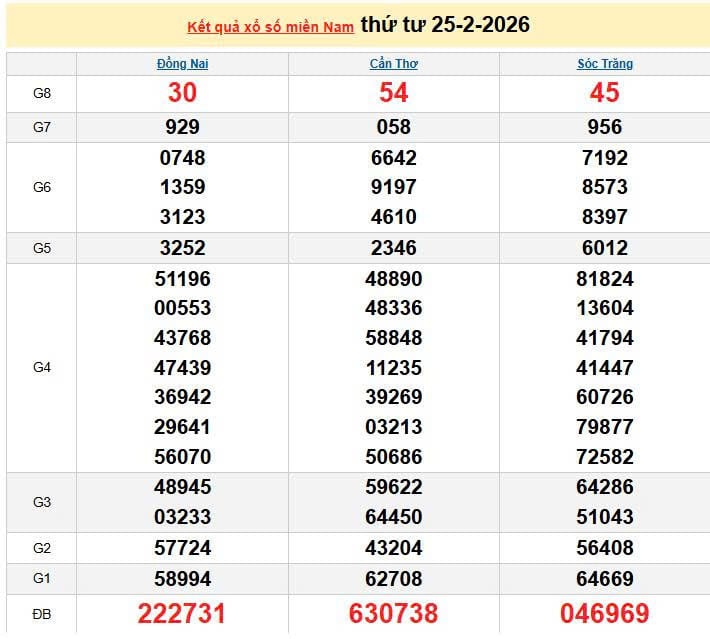 XSMN 25/2, KQXSMN 25/2. Xem lại kết quả xổ số miền Nam ngày 25/2/2026