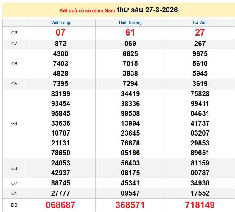 XSMN 27/3, KQXSMN 27/3. Xem lại kết quả xổ số miền Nam ngày 27/3/2026