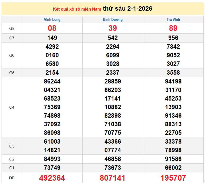 XSMN 2/1, KQXSMN 2/1. Xem lại kết quả xổ số miền Nam ngày 2/1/2026