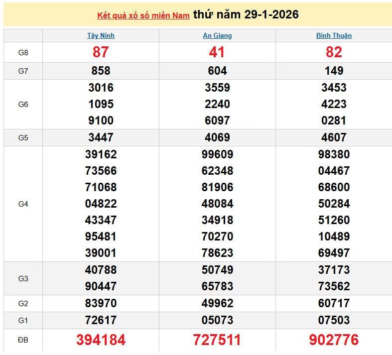 XSMN 29/1, KQXSMN 29/1. Xem lại kết quả xổ số miền Nam ngày 29/1/2026