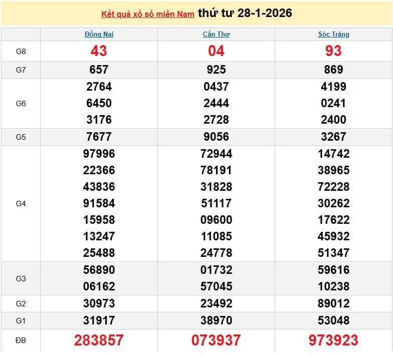 XSMN 28/1, KQXSMN 28/1. Xem lại kết quả xổ số miền Nam ngày 28/1/2026
