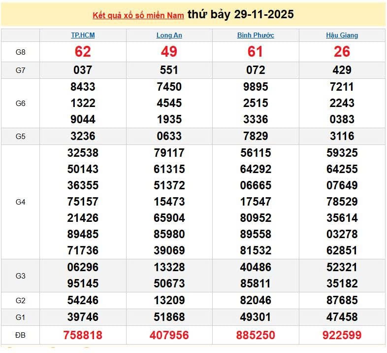 XSMN 29/11, KQXSMN 29/11. Xem lại kết quả xổ số miền Nam ngày 29/11/2025