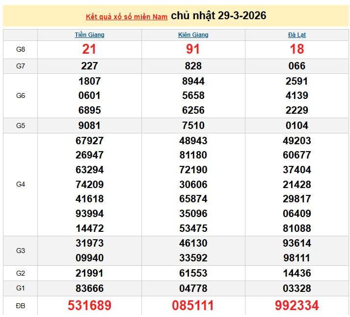 XSMN 29/3, KQXSMN 29/3. Xem lại kết quả xổ số miền Nam ngày 29/3/2026