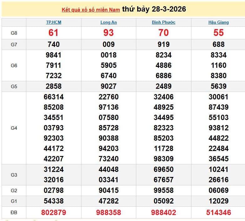 XSMN 28/3, KQXSMN 28/3. Xem lại kết quả xổ số miền Nam ngày 28/3/2026