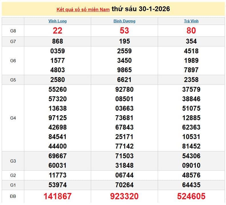 XSMN 30/1, KQXSMN 30/1. Xem lại kết quả xổ số miền Nam ngày 30/1/2026