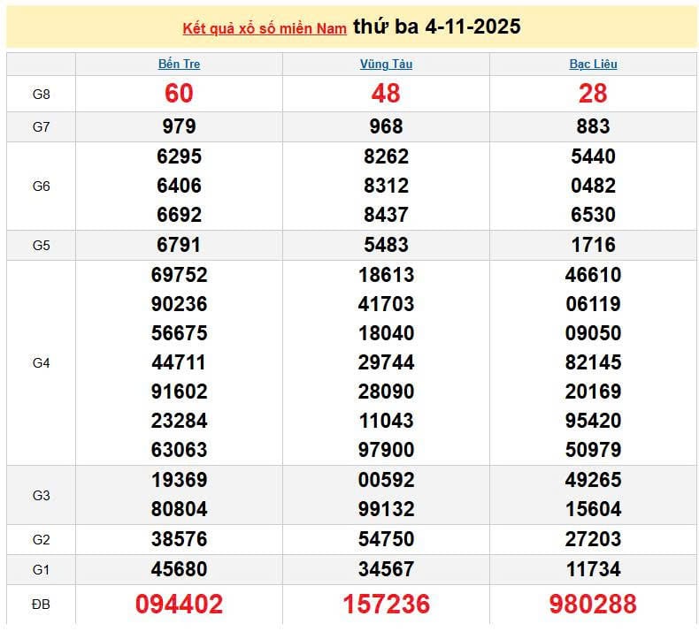 XSMN 4/11, KQXSMN 4/11. Xem lại kết quả xổ số miền Nam ngày 4/11/2025