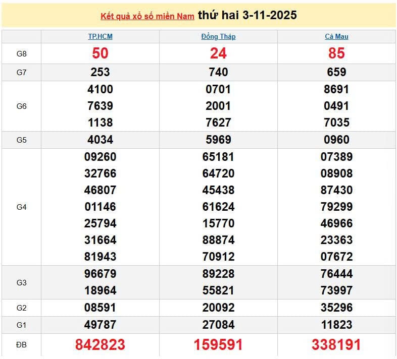 XSMN 3/11, KQXSMN 3/11. Xem lại kết quả xổ số miền Nam ngày 3/11/2025