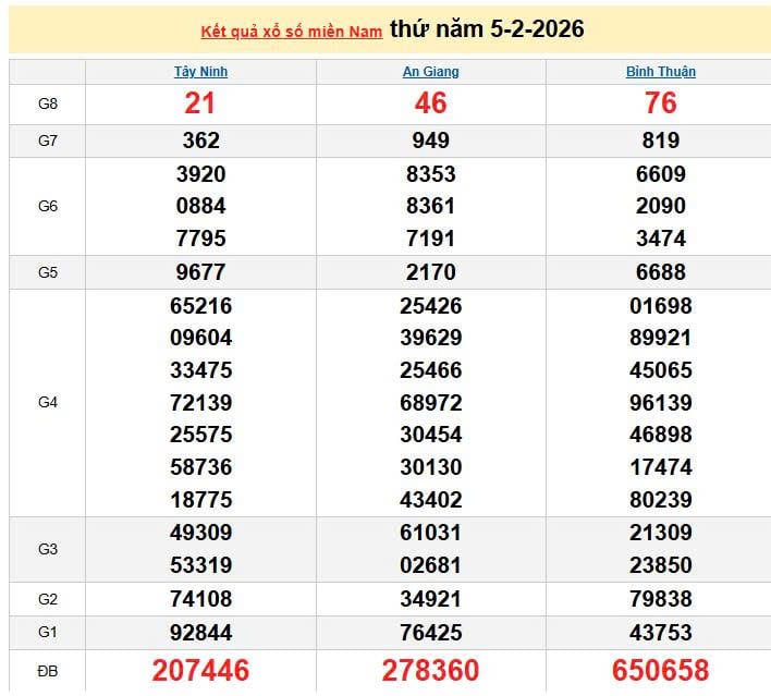 XSMN 5/2, KQXSMN 5/2. Xem lại kết quả xổ số miền Nam ngày 5/2/2026