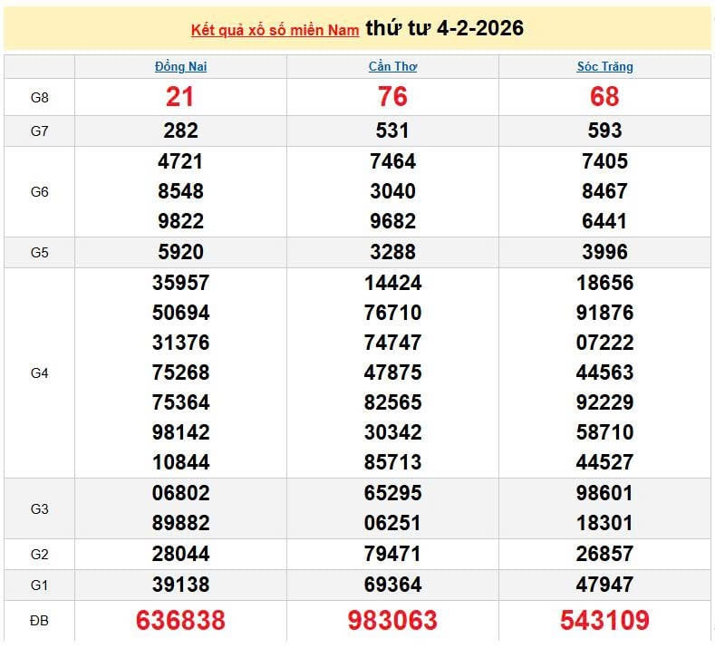 XSMN 4/2, KQXSMN 4/2. Xem lại kết quả xổ số miền Nam ngày 4/2/2026