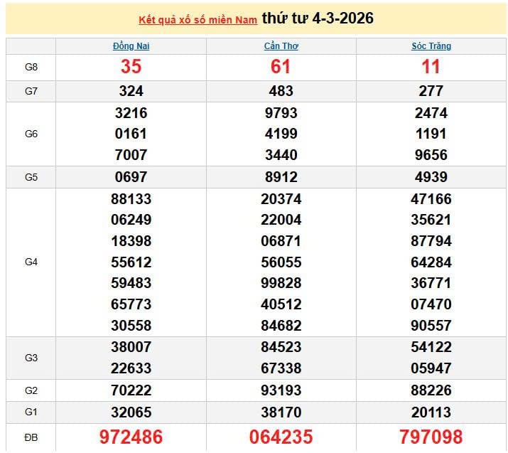 XSMN 4/3, KQXSMN 4/3. Xem lại kết quả xổ số miền Nam ngày 4/3/2026