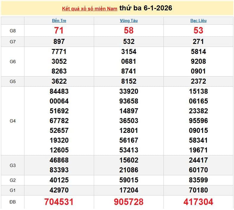 XSMN 6/1, KQXSMN 6/1. Xem lại kết quả xổ số miền Nam ngày 6/1/2026