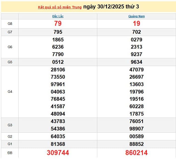 XSMT 30/12, KQXSMT 30/12. Xem lại kết quả xổ số miền Trung ngày 30/12/2025