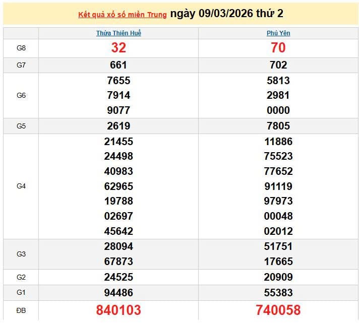 XSMT 9/3, KQXSMT 9/3. Xem lại kết quả xổ số miền Trung ngày 9/3/2026