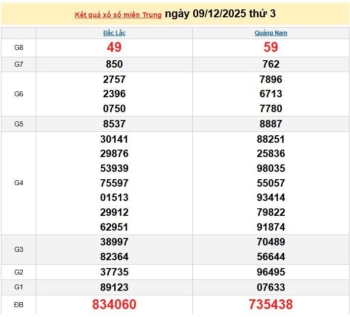 XSMT 9/12, KQXSMT 9/12. Xem lại kết quả xổ số miền Trung ngày 9/12/2025