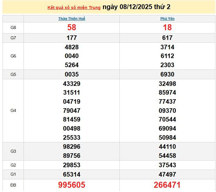 XSMT 8/12, KQXSMT 8/12. Xem lại kết quả xổ số miền Trung ngày 8/12/2025