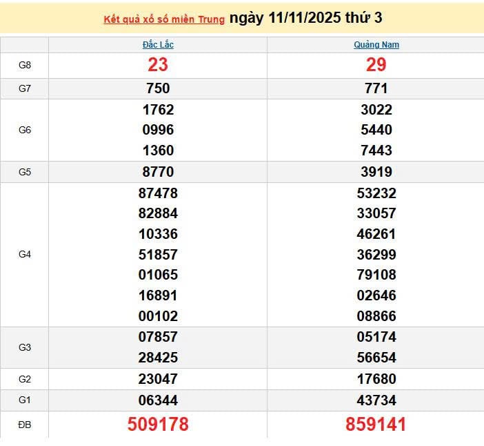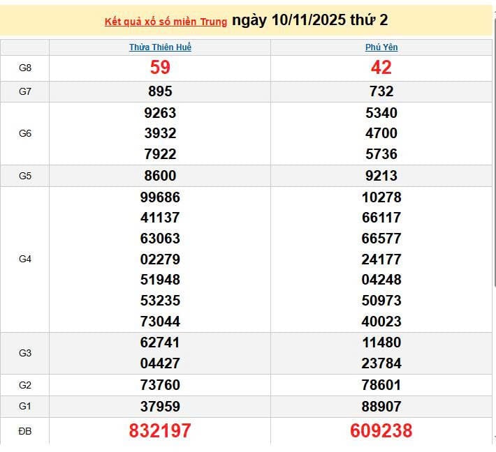 XSMT 10/11, KQXSMT 10/11. Xem lại kết quả xổ số miền Trung ngày 10/11/2025