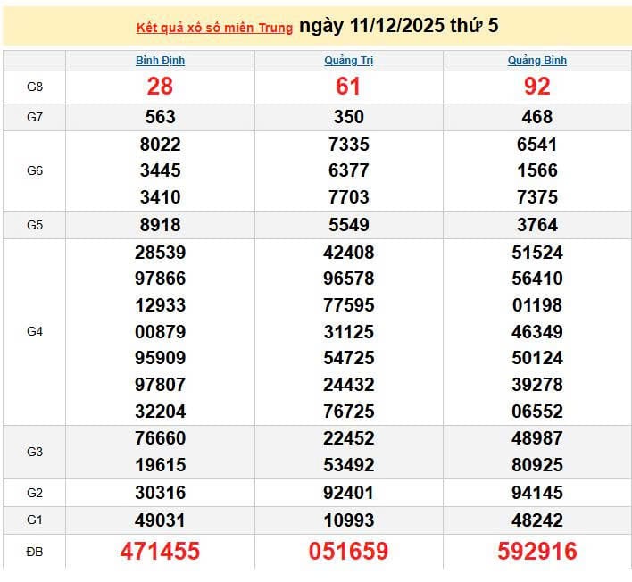XSMT 11/12, KQXSMT 11/12. Xem lại kết quả xổ số miền Trung ngày 11/12/2025