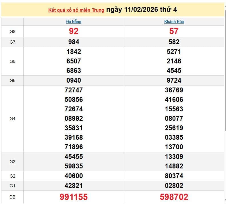 XSMT 11/2, KQXSMT 11/2. Xem lại kết quả xổ số miền Trung ngày 11/2/2026