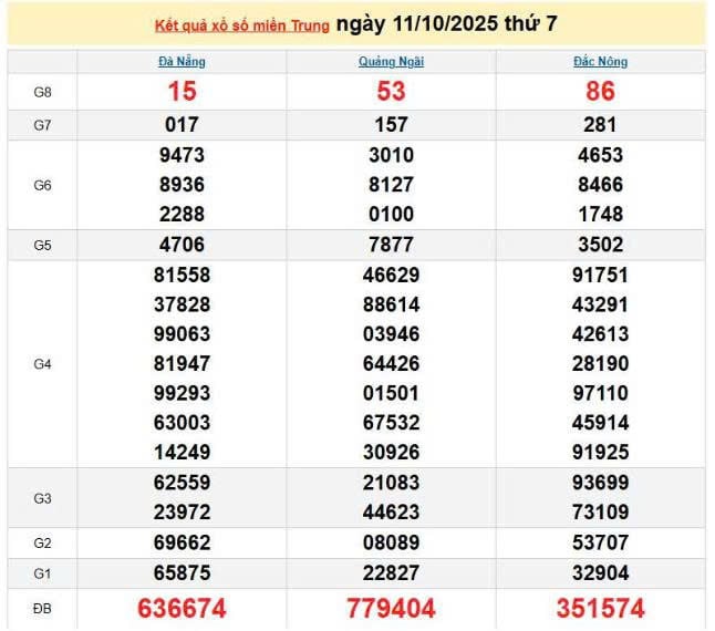 XSMT 11/10, KQXSMT 11/10. Xem lại kết quả xổ số miền Trung ngày 11/10/2025