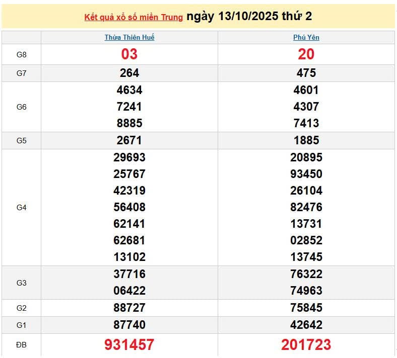 XSMT 13/10, KQXSMT 13/10. Xem lại kết quả xổ số miền Trung ngày 13/10/2025