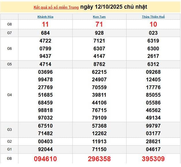 XSMT 12/10, KQXSMT 12/10. Xem lại kết quả xổ số miền Trung ngày 12/10/2025