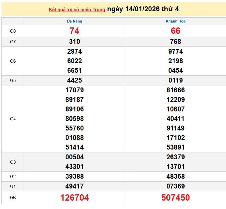 XSMT 14/1, KQXSMT 14/1. Xem lại kết quả xổ số miền Trung ngày 14/1/2026
