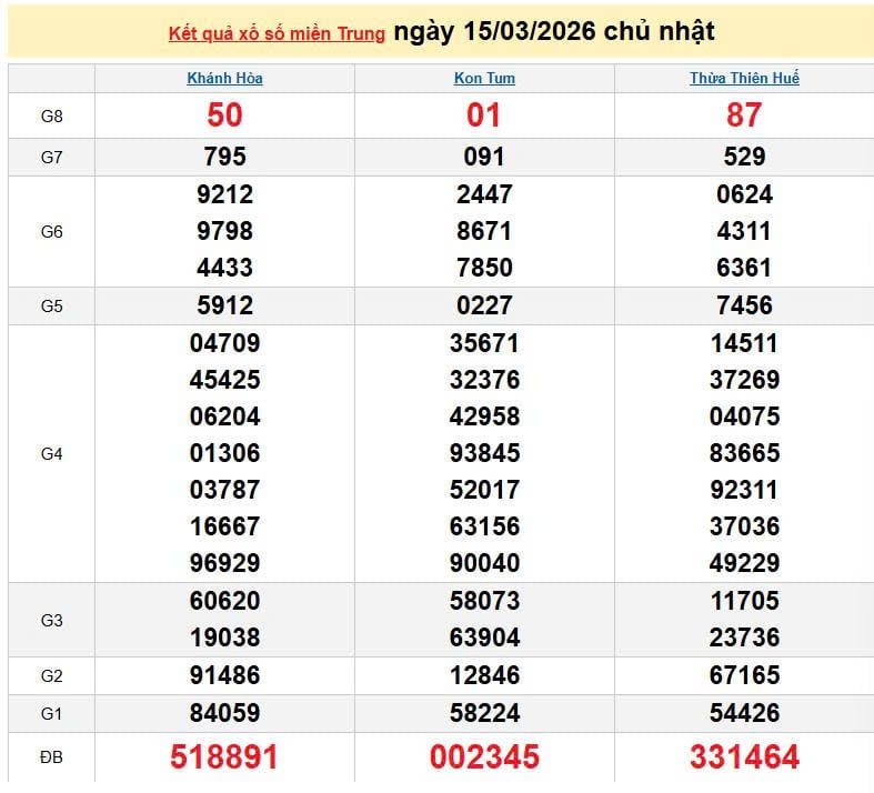 XSMT 15/3, KQXSMT 15/3. Xem lại kết quả xổ số miền Trung ngày 15/3/2026