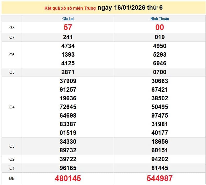 XSMT 16/1, KQXSMT 16/1. Xem lại kết quả xổ số miền Trung ngày 16/1/2026