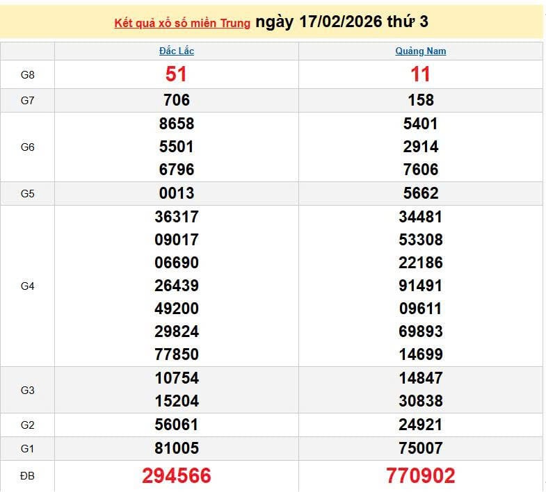 XSMT 17/2, KQXSMT 17/2. Xem lại kết quả xổ số miền Trung ngày 17/2/2026