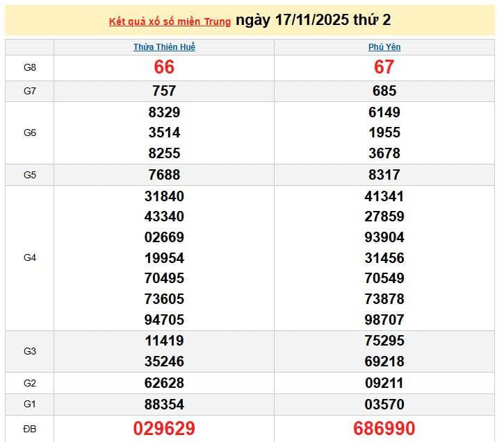 XSMT 17/11, KQXSMT 17/11. Xem lại kết quả xổ số miền Trung ngày 17/11/2025