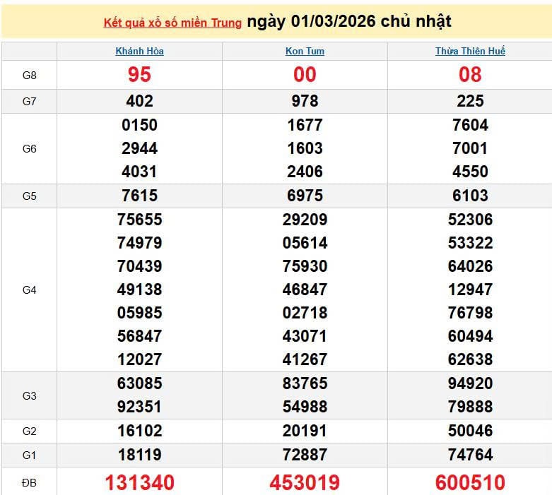 XSMT 1/3, KQXSMT 1/3. Xem lại kết quả xổ số miền Trung ngày 1/3/2026