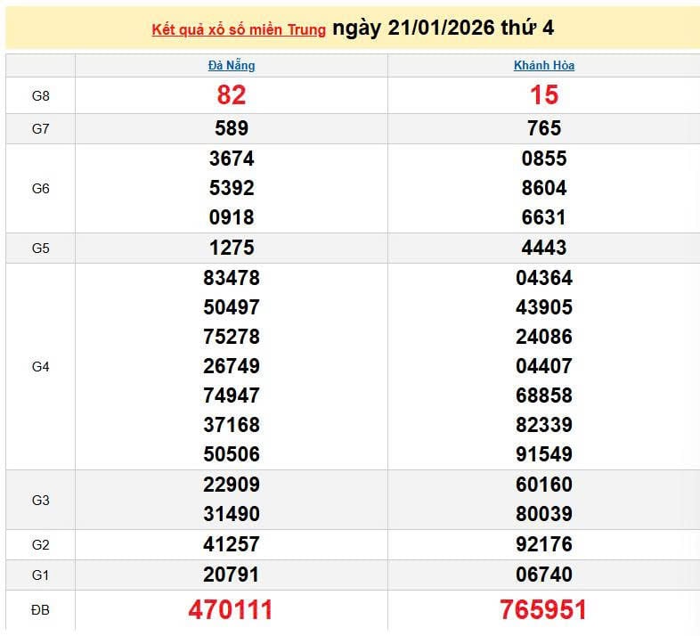 XSMT 21/1, KQXSMT 21/1. Xem lại kết quả xổ số miền Trung ngày 21/1/2026
