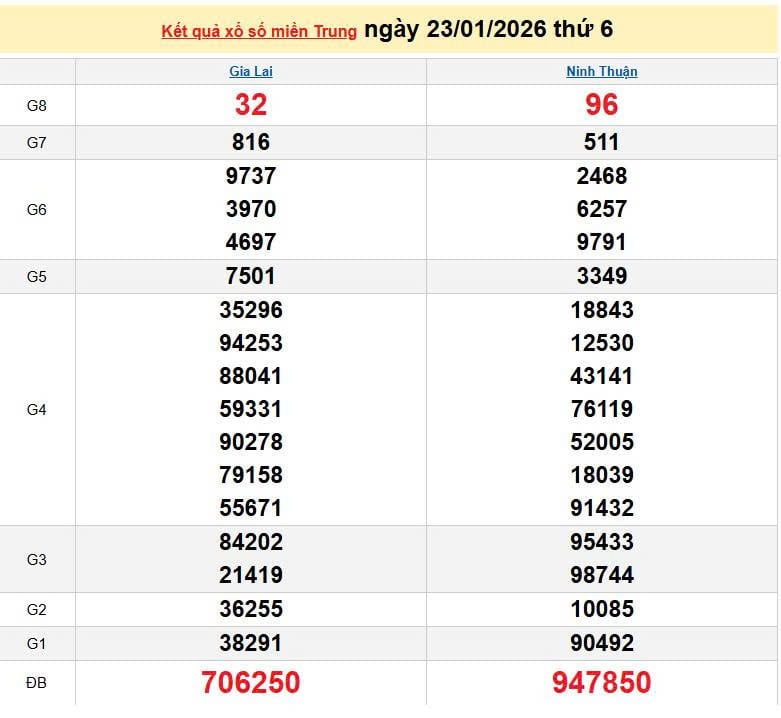 XSMT 23/1, KQXSMT 23/1. Xem lại kết quả xổ số miền Trung ngày 23/1/2026