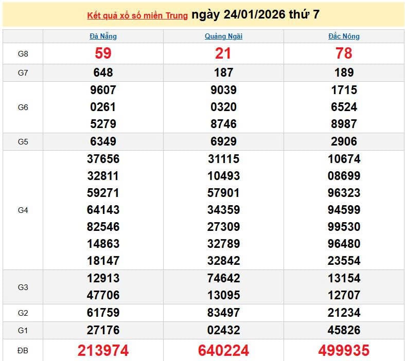 XSMT 24/1, KQXSMT 24/1. Xem lại kết quả xổ số miền Trung ngày 24/1/2026