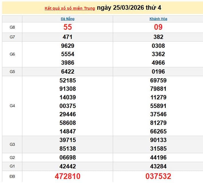 XSMT 25/3, KQXSMT 25/3. Xem lại kết quả xổ số miền Trung ngày 25/3/2026