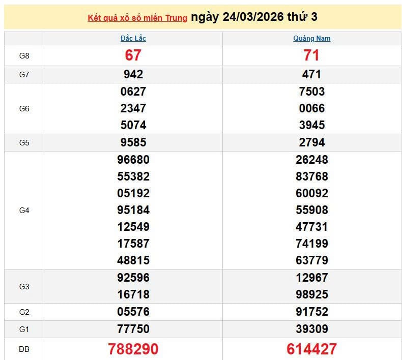 XSMT 24/3, KQXSMT 24/3. Xem lại kết quả xổ số miền Trung ngày 24/3/2026