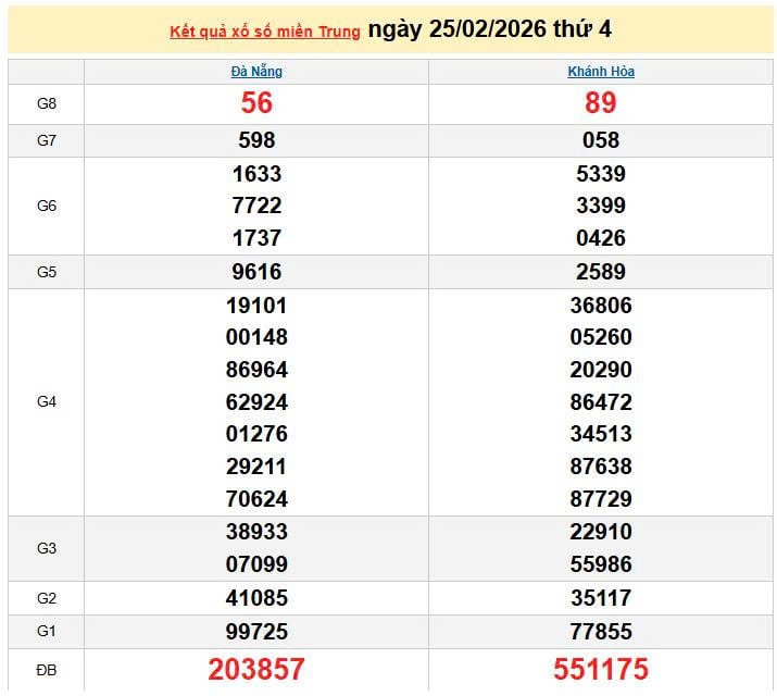 XSMT 25/2, KQXSMT 25/2. Xem lại kết quả xổ số miền Trung ngày 25/2/2026