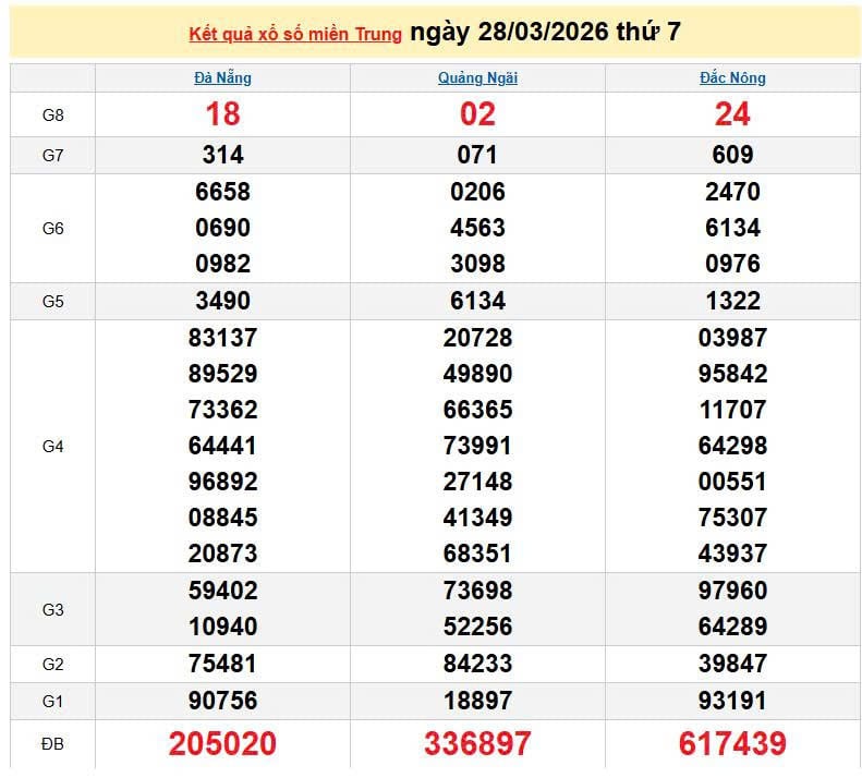 XSMT 28/3, KQXSMT 28/3. Xem lại kết quả xổ số miền Trung ngày 28/3/2026