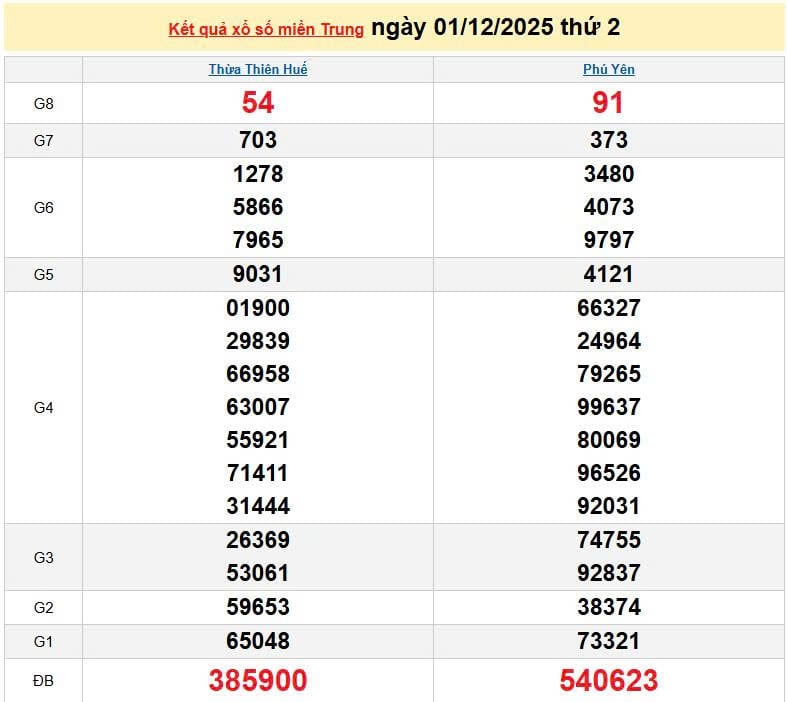 XSMT 1/12, KQXSMT 1/12. Xem lại kết quả xổ số miền Trung ngày 1/12/2025