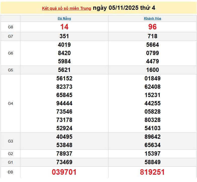 XSMT 5/11, KQXSMT 5/11. Xem lại kết quả xổ số miền Trung ngày 5/11/2025