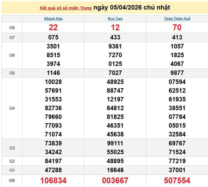 XSMT 5/4, KQXSMT 5/4. Xem lại kết quả xổ số miền Trung ngày 5/4/2026