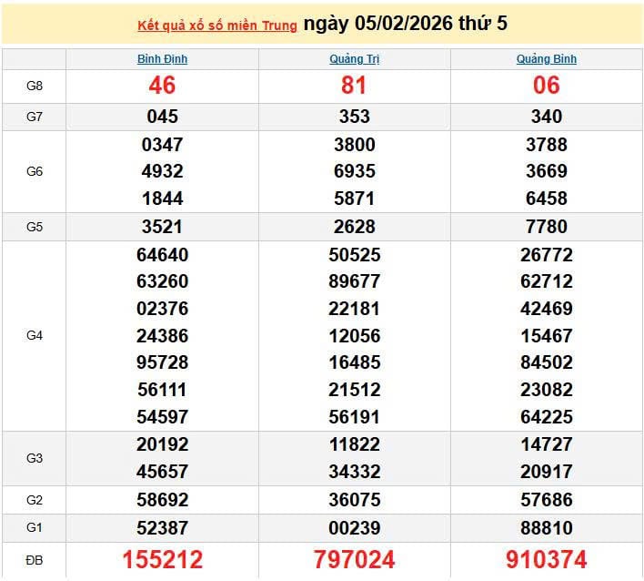 XSMT 5/2, KQXSMT 5/2. Xem lại kết quả xổ số miền Trung ngày 5/2/2026